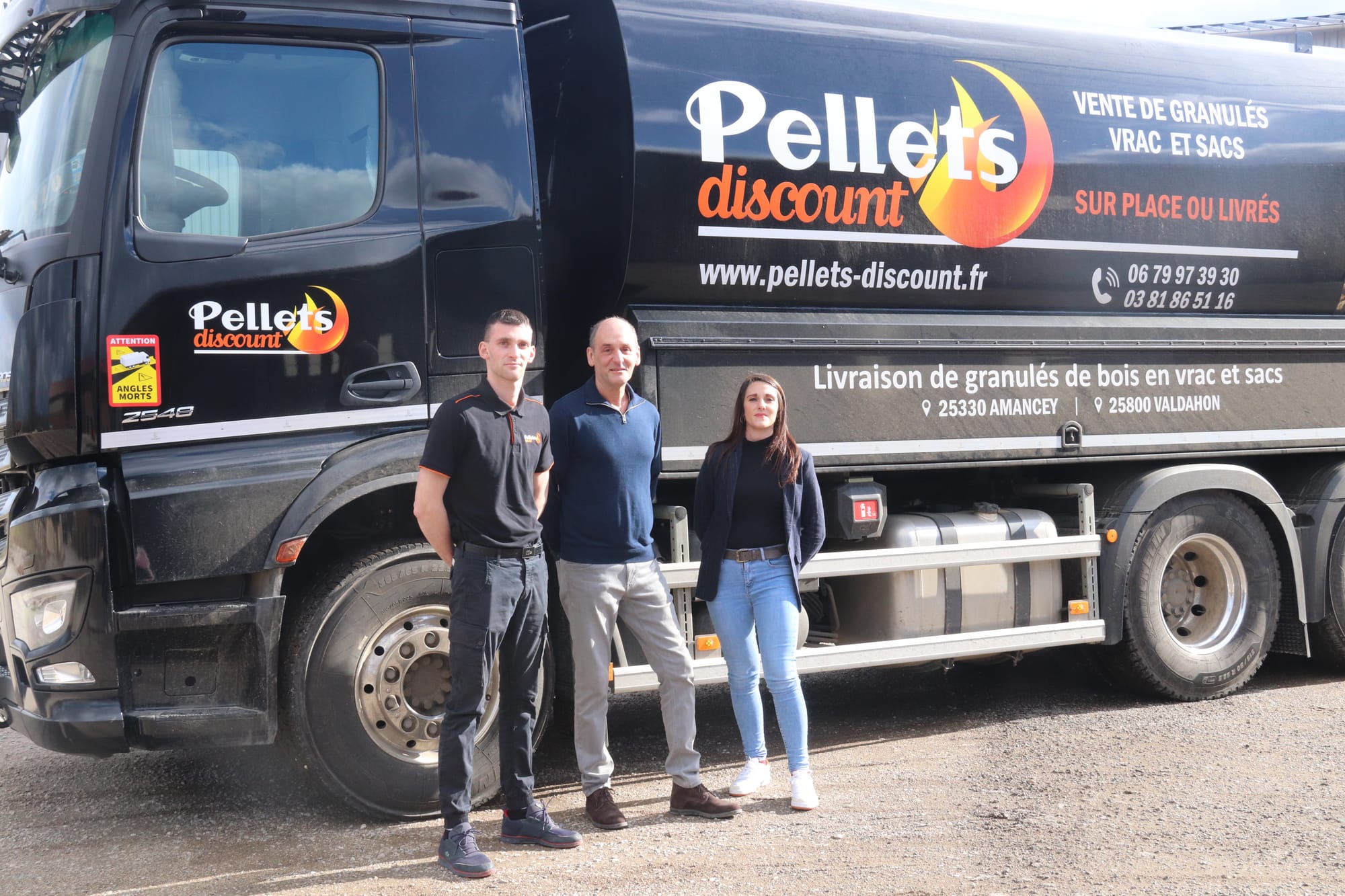 « C’est une véritable fierté de reprendre la société familiale, la faire prospérer, la faire grandir, la développer, ajoute Laura. Je suis une femme de défi. Reprendre une entreprise est un défi. Je suis prête. » Le binôme frère-soeur se complète dans les compétences. Si Enzo gère la logistique, les chauffeurs et le réapprovisionnement, Laura met à contribution ce qu’elle a acquis, en autodidacte, pendant ses années dans le tourisme : le management, l’administratif, les questions financières. Le fondateur de l’entreprise garde un oeil sur le bébé Ordinaire et gère des activités polyvalentes. La retraite n’est pas près de sonner pour Franck. Car le dynamisme impulsé par ses deux enfants amène de belles promesses de développement. Si pour l’heure Pellets Discount livre annuellement 20 000 tonnes par an dans un rayon de 100 km d’Amancey, et peut stocker jusqu’à 3 000m2, deux nouveaux entrepôts à Valdahon et Pontarlier vont venir étoffer leur réseau. « Il s’agit d’élargir notre périmètre mais aussi de réduire les coûts des transports et leur empreinte carbone », précise Laura. Ces projets de développement s’accompagneront de recrutement. Les pellets proviennent de fournisseurs locaux, 100% résineux, certifiés haut de gamme. Autre originalité de Pellets discount : l’installation de distributeurs automatiques qui permet notamment aux personnes ayant peu de capacités de stockage de se réapprovisionner facilement, à toute heure, et en petite quantité. Proximité et service, autant de qualité que Laura Ordinaire a pu expérimenter dans son autre vie professionnelle. Celle qui a eu à coeur de faire rayonner le territoire grand bisontin sous le prisme du tourisme s’attache aujourd’hui à la même mission. Animée de l’étincelle de l’entreprenariat, alimentée par son frère et son père, Laura espère bien donner plus d’éclat à son entreprise.