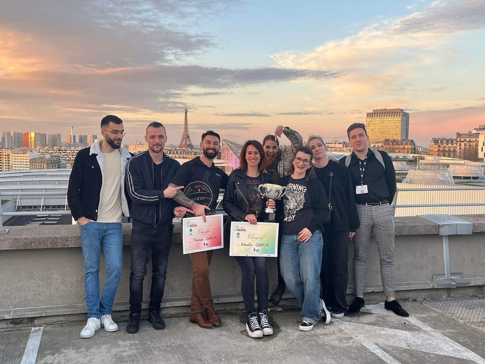 Thomas peut compter sur équipe fidèle d’une vingtaine de personnes qui lui permet d’ouvrir ses restaurants sept jours sur sept, midi et soir. Il peut ainsi se libérer du temps pour sa passion des concours de pizza. Il a signé la 6ème place à la Coupe du Monde de Rome, face à des italiens bien sûr, mais aussi des Espagnols, Japonais, Argentins, Mexicains… “Il faut travailler sur les saveurs et être capable d’offrir sur nos pizzas des alliances surprenantes mais totalement maîtrisées. Dans ces championnats, nous faisons face à des pizzaïolos mais également des chefs qui privilégient le côté cuisine de nos productions”, note Thomas. Il s’est d’ailleurs formé avec Jacques Barnachon pour progresser sur cet aspect.