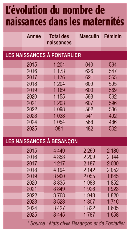 Dans cette évolution morose, le département du Doubs continue bon an mal an à tirer son épingle du jeu. “Le croisement des courbes entre les naissances et les décès s’est réalisé seulement en 2024 dans le Doubs” observe Charles Pilarski, chef du service Études et diffusion de l’I.N.S.E.E. Bourgogne-Franche-Comté. En 2023, on a enregistré autant de naissances que de décès dans le Doubs (5 116 précisément) et en 2024, la courbe des décès (5 142) est passée au-dessus de celle des naissances (4 976) pour la première fois. “Le Doubs était le dernier des huit départements de B.F.C. qui avait encore un solde naturel positif. L’an prochain, tous auront un solde naturel négatif dans la région.” À l’échelle de la région, 22 500 bébés seulement sont nés en 2024 en Bourgogne-Franche-Comté, c’est un niveau historiquement bas, et “l’une des plus fortes baisses de France métropolitaine.” C’est le plus faible nombre de naissances enregistrées dans la région depuis cinquante ans.