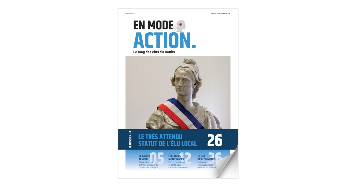 "En Mode Action 4" se positionne comme un outil précieux pour les élus du Doubs, leur fournissant des informations pertinentes et actuelles sur les enjeux locaux, les lois en vigueur, et les initiatives en cours pour améliorer la gestion des collectivités et la qualité de vie des citoyens.