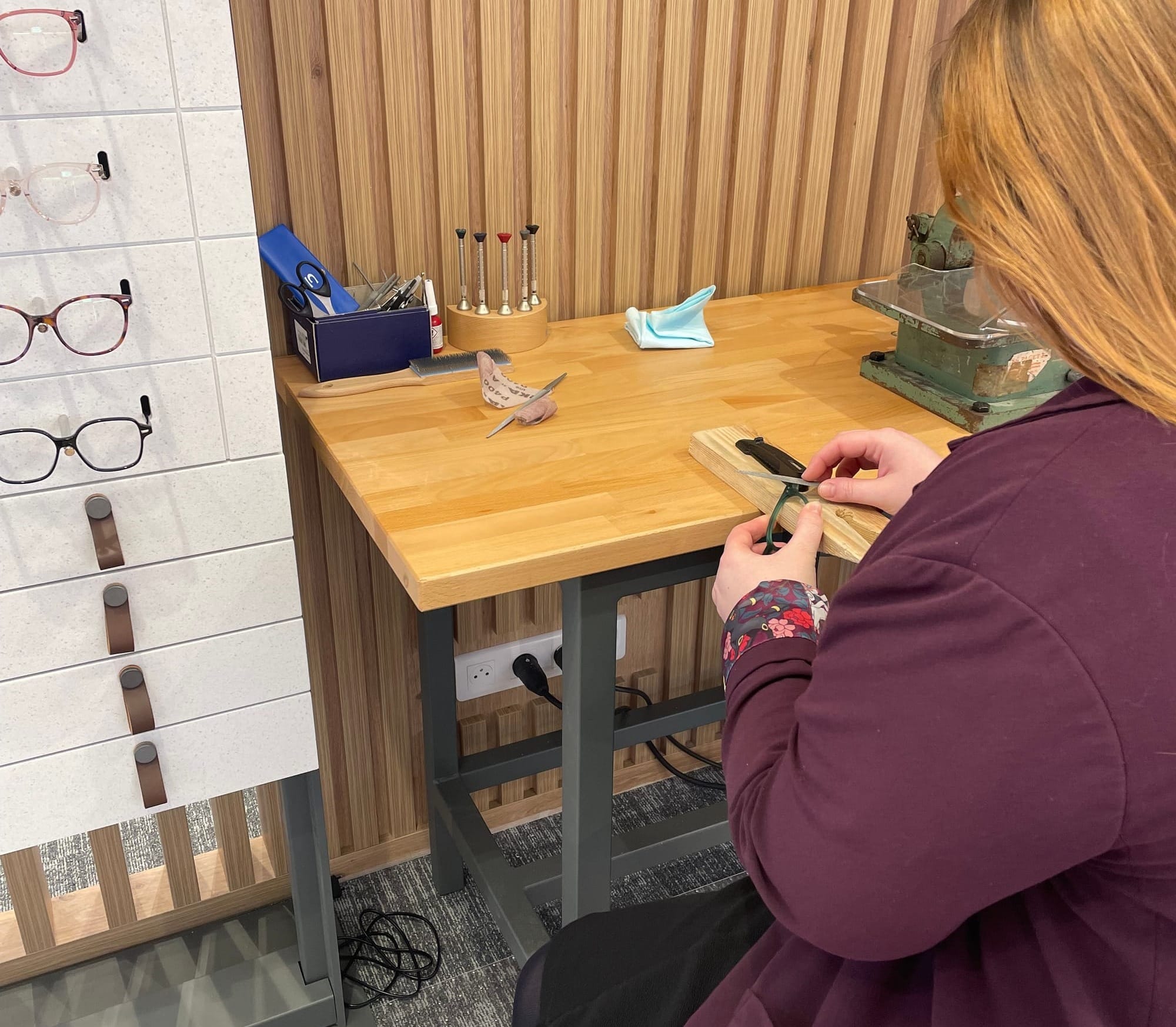 C’est elle qui fabrique à la demande ces lunettes sur mesure. Un travail de précision qui commence par la taille de la face des lunettes et des branches avec une machine à commande numérique. « Ensuite, toutes les finitions se font à la main, le polissage, l’assemblage, le travail du galbe des branches et de la face pour donner à la monture sa forme définitive » détaille la professionnelle.