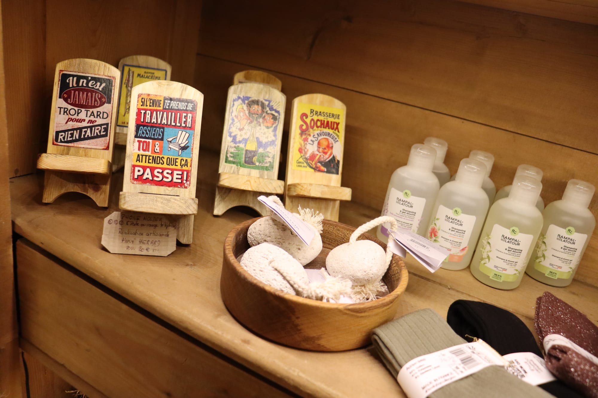 Depuis 2016, ils transforment la pièce du tuyé, un carré d’à peine 4 ou 5 mètres de côté, pour y aménager ce petit marché de Noël où les visiteurs peuvent glaner de belles idées-cadeaux à l’approche des fêtes. Le point commun de ces objets : leur fabrication artisanale. On est bien loin de ces marchés de Noël XXL où se concentrent les cadeaux Made in China.