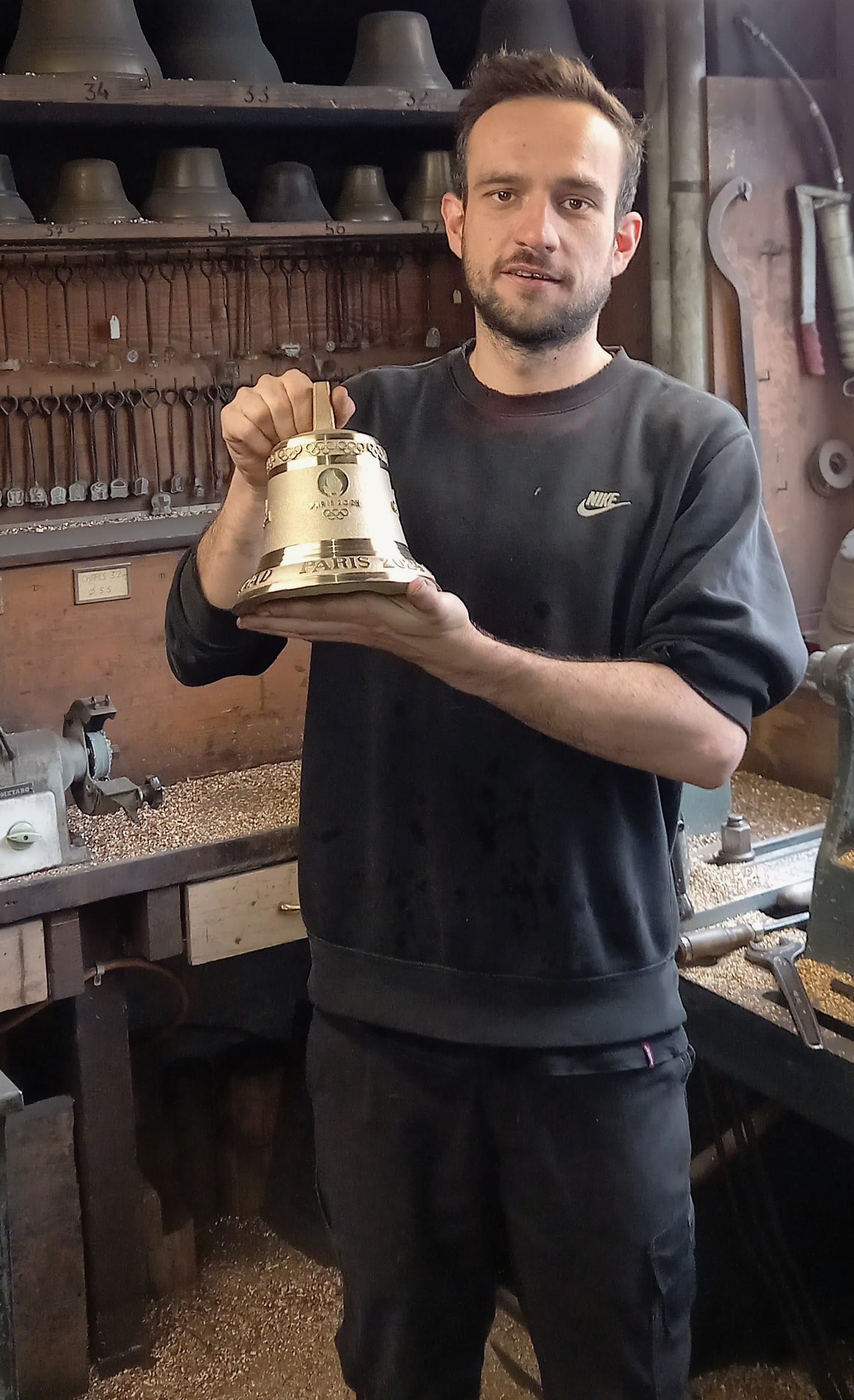 “Cette année, R.T.S. et TF1 ont réalisé des reportages sur les cloches qui vont servir aux J.O. de Paris. Il y a aussi l’A.F.P. qui nous a rendu visite, donc je pense que des gens du monde entier ont pu voir notre travail”, souligne Aloïs en songeant à ses devanciers qui n’ont pas eu la chance de plastronner devant les caméras. Pour les J.O. 2024, il a dû réaliser 38 cloches d’une trentaine de centimètres, ornées de disques et de flammes olympiques, que l’on entendra résonner lors des épreuves d’athlétisme ou de cyclisme sur piste. Passionné de sport, Aloïs craint de ne pas pouvoir assister aux Jeux : “J’aimerais aller les voir, car c’est tout près. J’ai demandé des places à la direction d’Oméga, mais je n’ai toujours pas eu de réponse de leur part.”