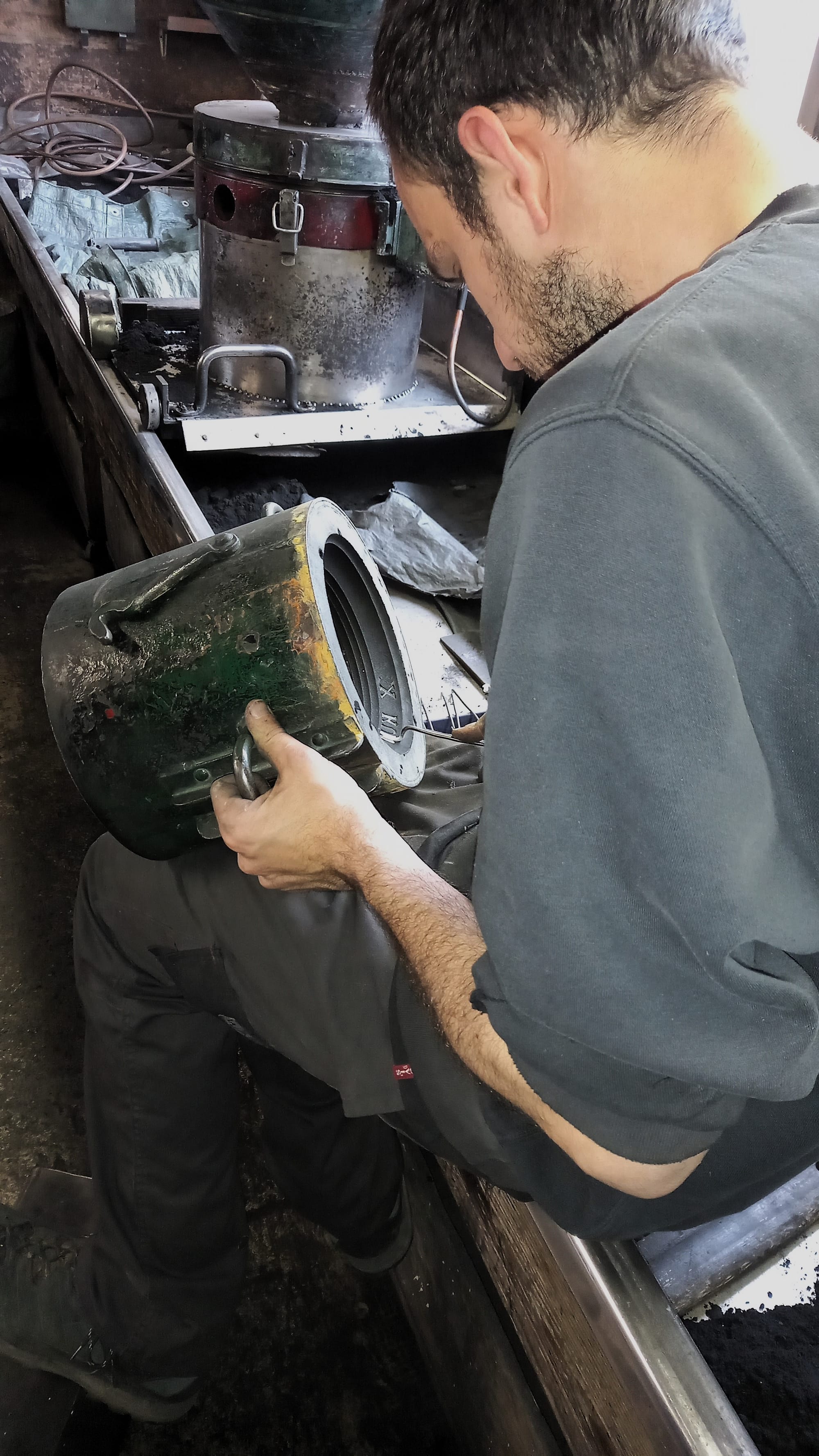 “Ceux qui ont créé la fonderie, des Italiens du Piémont, étamaient au départ des chaudrons. Ils n’ont pas eu beaucoup de mal à fabriquer des cloches par la suite. Leur méthode de fabrication n’a pas beaucoup évolué, le mazout remplaçant simplement aujourd’hui le coke pour faire chauffer le four”, note-t-il. La confection d’une cloche, comme celle que l’on pourra observer au Stade de France cet été, nécessite plusieurs étapes. La première et la plus technique étant le moulage : “Pour cette opération, on utilise une cloche-modèle que l’on place dans un moule en métal. On la recouvre ensuite avec une terre argileuse noire, le sable de Paris, qui va prendre la forme de la cloche au cours du séchage.”