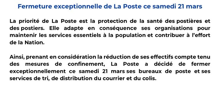 La Poste est exceptionnellement fermée samedi. Elle veut protéger ses salariés.