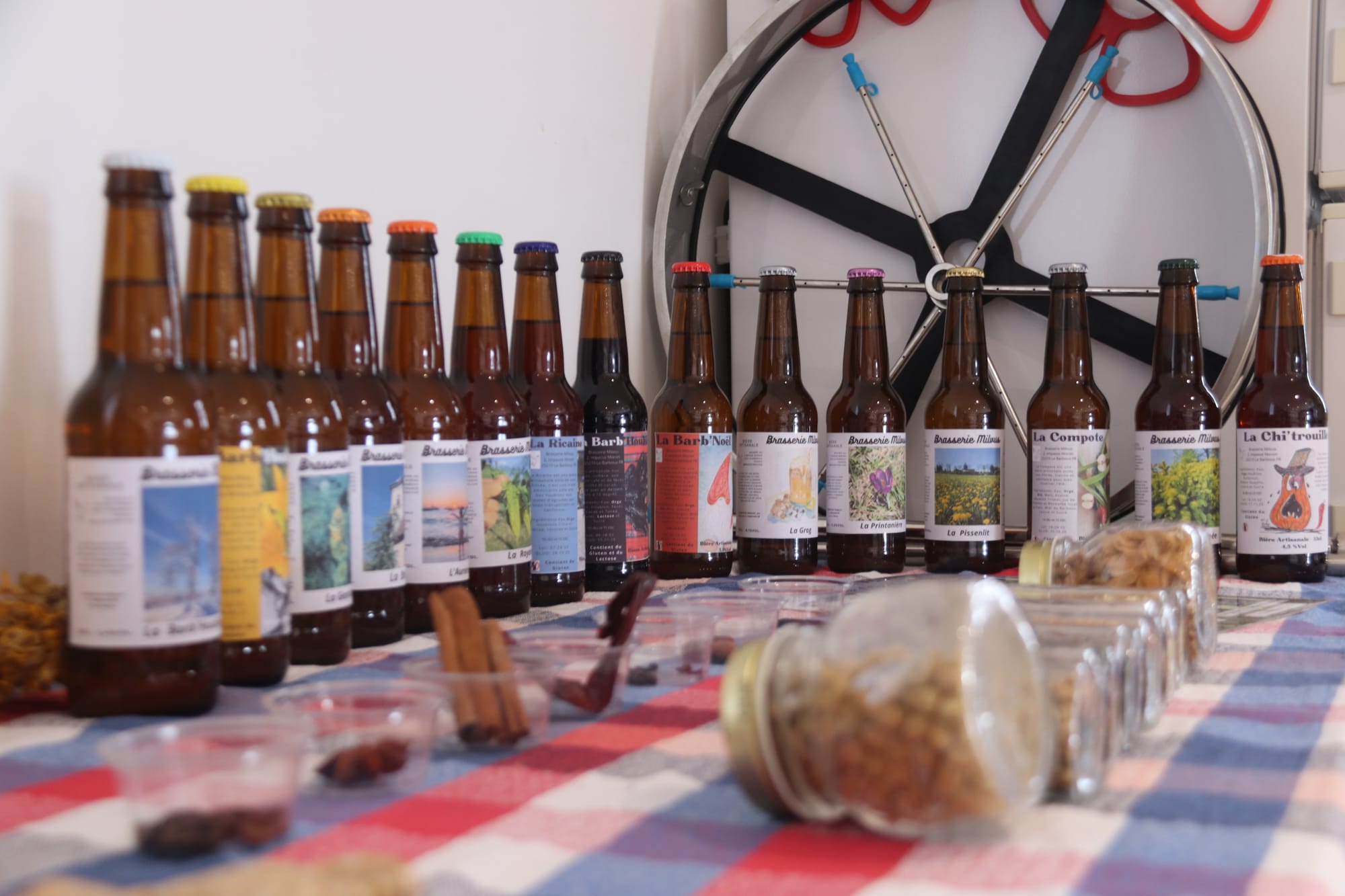 Bières au pissenlit, à la gentiane, aux bourgeons d’épicéa, au sureau du Barboux… La brasserie Milvus se définit avant tout comme locale, familiale et amicale. Car il n’est pas rare que les amis du couple prêtent main-forte pour la cueillette ou lancent des défis à Laurence et Julien. Comme celui de concocter une bière à la citrouille pour Halloween. Laurence produit 8 bières permanentes dont trois I.P.A., et notamment la Royale brassée avec le houblon cultivé dans son jardin à 1 050 mètres d’altitude. Elle brasse aussi une bière noire, épaisse et gourmande à base de cacao tonka, “en dessert ou au goûter avec un gâteau au chocolat”, conseille-t-elle.