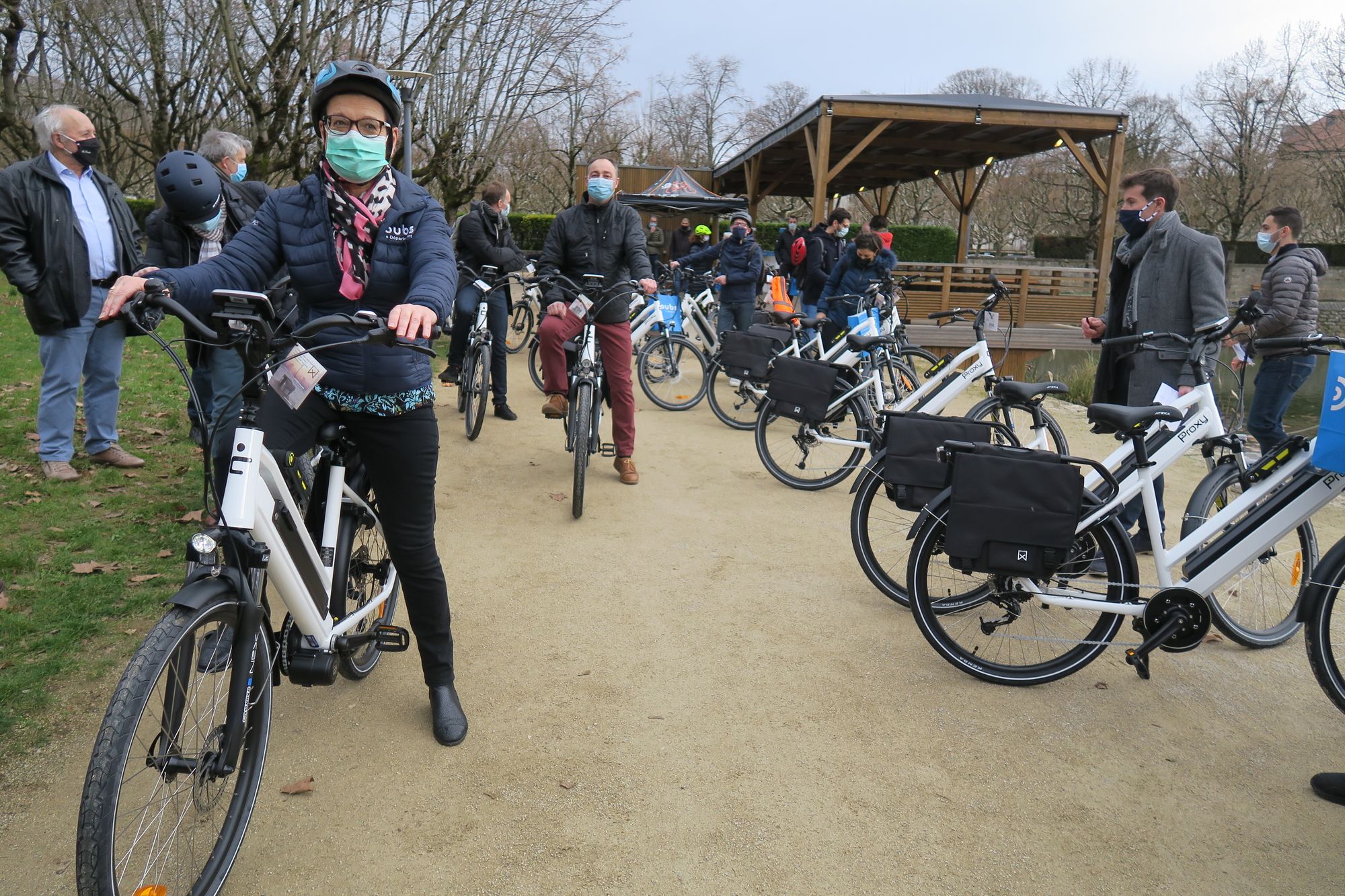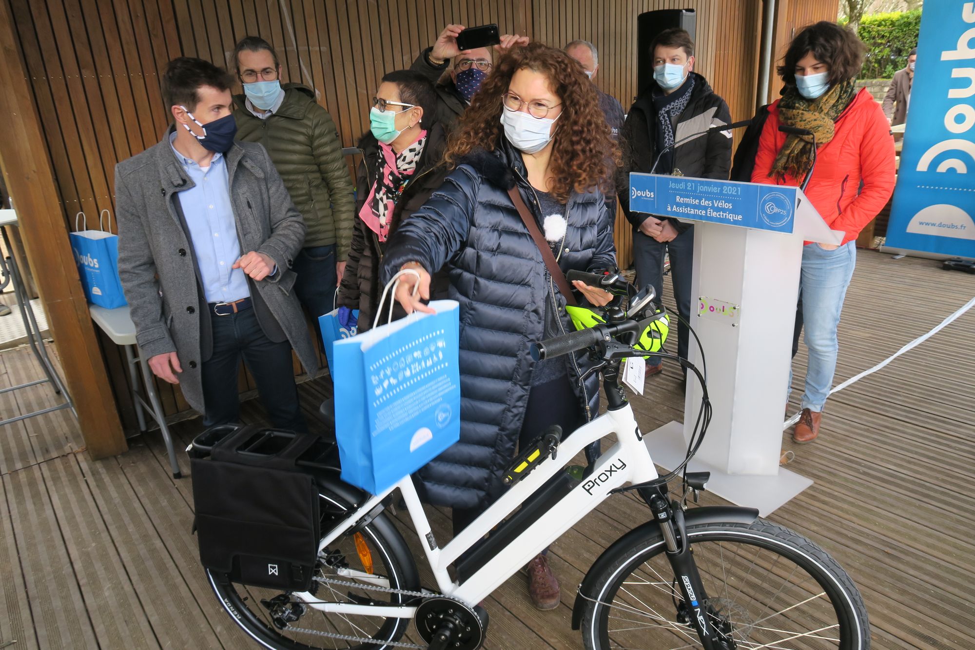 L'engouement actuel autour du vélo à assistance électrique (VAE) est tel que la société bisontine Proxy Cycle n'a pu fournir que 25 vélos pour cette première livraison au Conseil départemental. "Tous les fabricants sont en rupture, la demande est énorme" reconnaît Édouard Lapoire, un des associés de la société basée sur la zone d'École-Valentin. Christine Bouquin, la présidente du Département du Doubs, a donc dû se contenter d'une première livraison de 25 VAE, immédiatement attribués ce matin à 25 agents de la collectivité. "Ces vélos sont mis à disposition des agents pour leurs trajets domicile-travail, mais j'ai souhaité qu'ils puissent également les utiliser le week-end, avec leurs familles, ou encore pour faire leurs courses. Encourager les changements de modes de déplacement en faveur du vélo, c'est un des objectifs majeurs de notre plan d'investissement" observe Christine Bouquin.