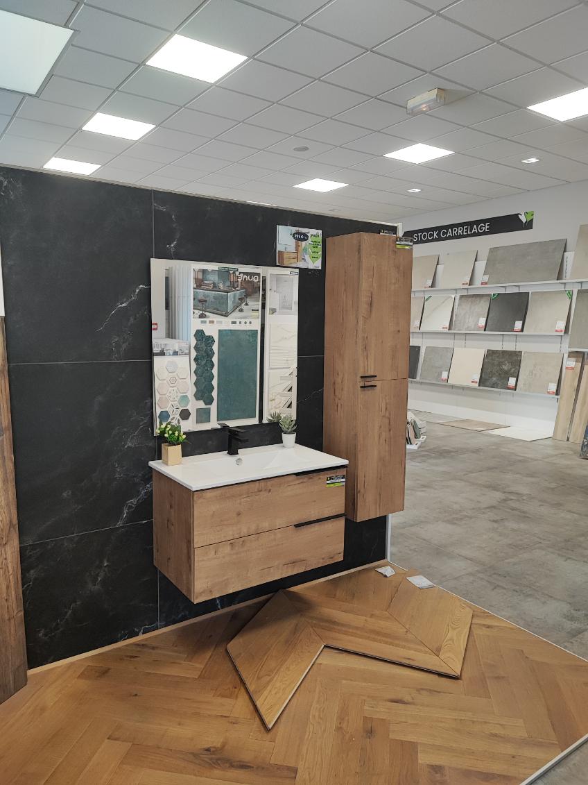 Parmi les produits prisés, il y a les carrelages imitation bois. Ils ont l’aspect du bois (l’effet matière est parfait) en ayant la facilité d’entretien du carrelage. “Beaucoup de clients viennent aussi pour les lambris. Ces panneaux à fond noir couverts de lattes décoratives sont très tendance. Ils donnent à une pièce un côté moderne et chaleureux” remarque l’équipe du magasin de Serre-les-Sapins.
