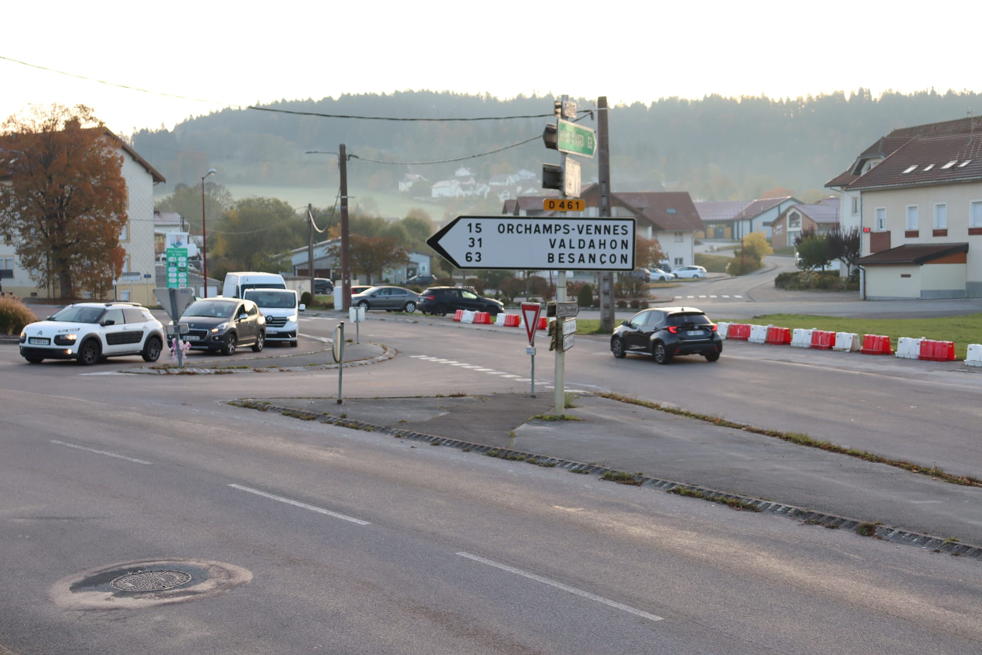 La commune est traversée par les deux axes majeurs de la R.D. 461 et la R.D. 437, qui enregistrent respectivement des trafics de près de 10 000 et de 13 000 véhicules par jour à cet endroit. « Nous y avons déploré un mort il y a quelques années, il y a beaucoup d’accidents évités de justesse, et très régulièrement des accrochages et des tôles froissées. Les personnes qui sont venues faire les comptages de véhicules étaient assez surprises de la dangerosité de ce carrefour » ajoute Mme Redoutey.