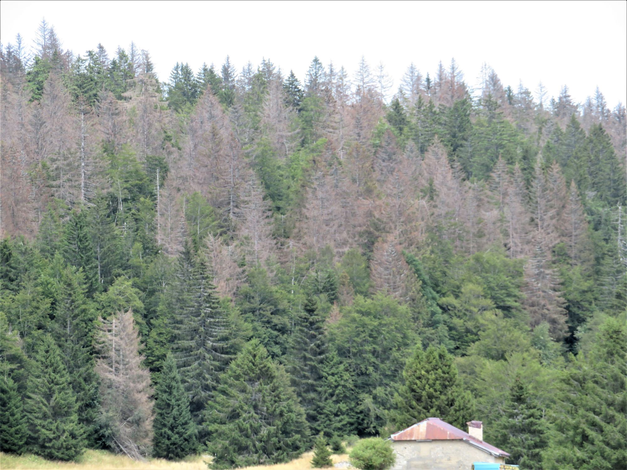 Il n’y a plus de frontière, de seuil altitudinal. L’absence de précipitations orageuses est néfaste aux pessières qui se retrouvent affaiblies par le déficit hydrique. Les conditions sont favorables au développement des scolytes.