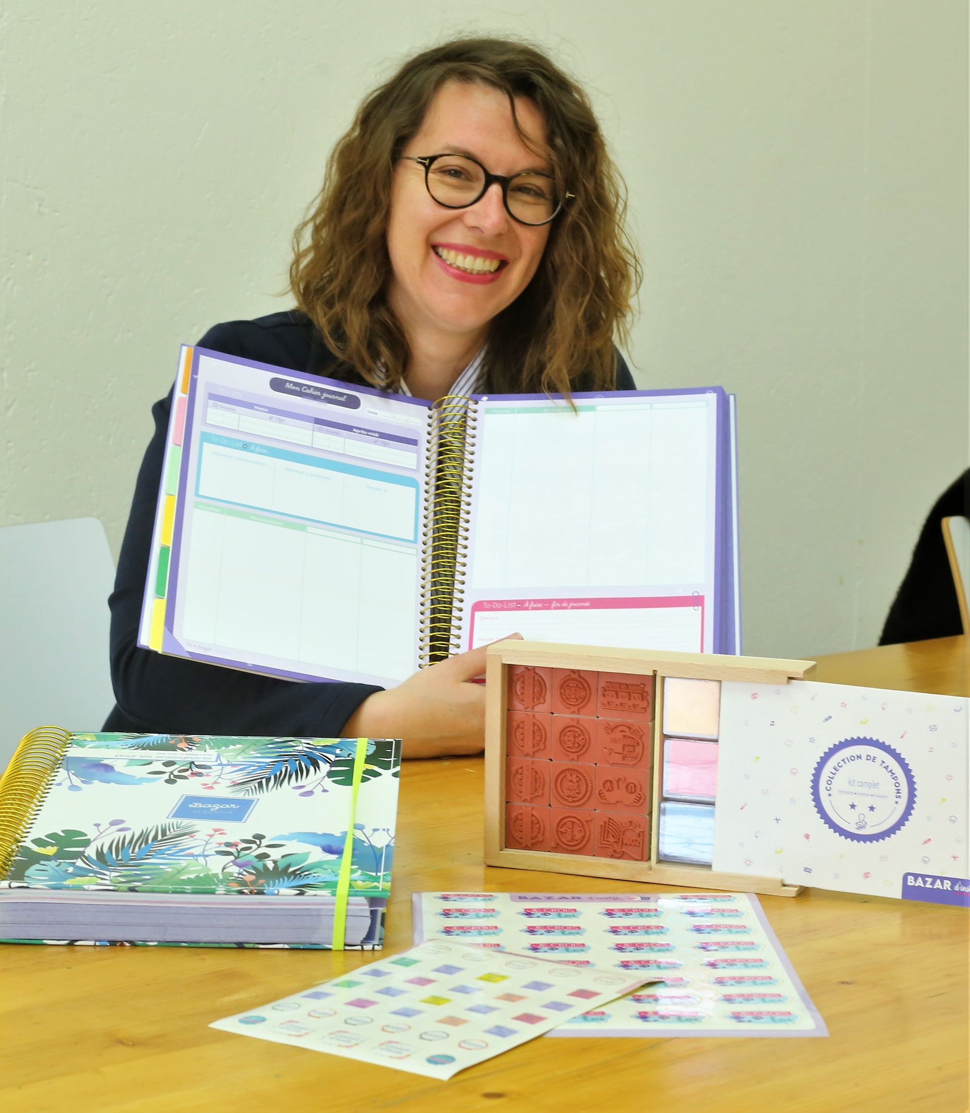 Angélique Brague, professeure des écoles en maternelle, a créé la société “Bazar d’instit”. Son activité : créer des accessoires (cahiers, sacs…) destinés à la profession d’enseignant.