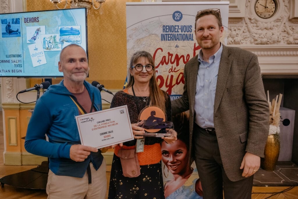 Ce carnet de voyage illustré par Corinne Salvi sur des textes de Christian Begin a remporté le Grand prix de la fondation d’entreprise Michelin discerné le 15 novembre dans le cadre des 25èmes Rendez-vous du carnet de voyage