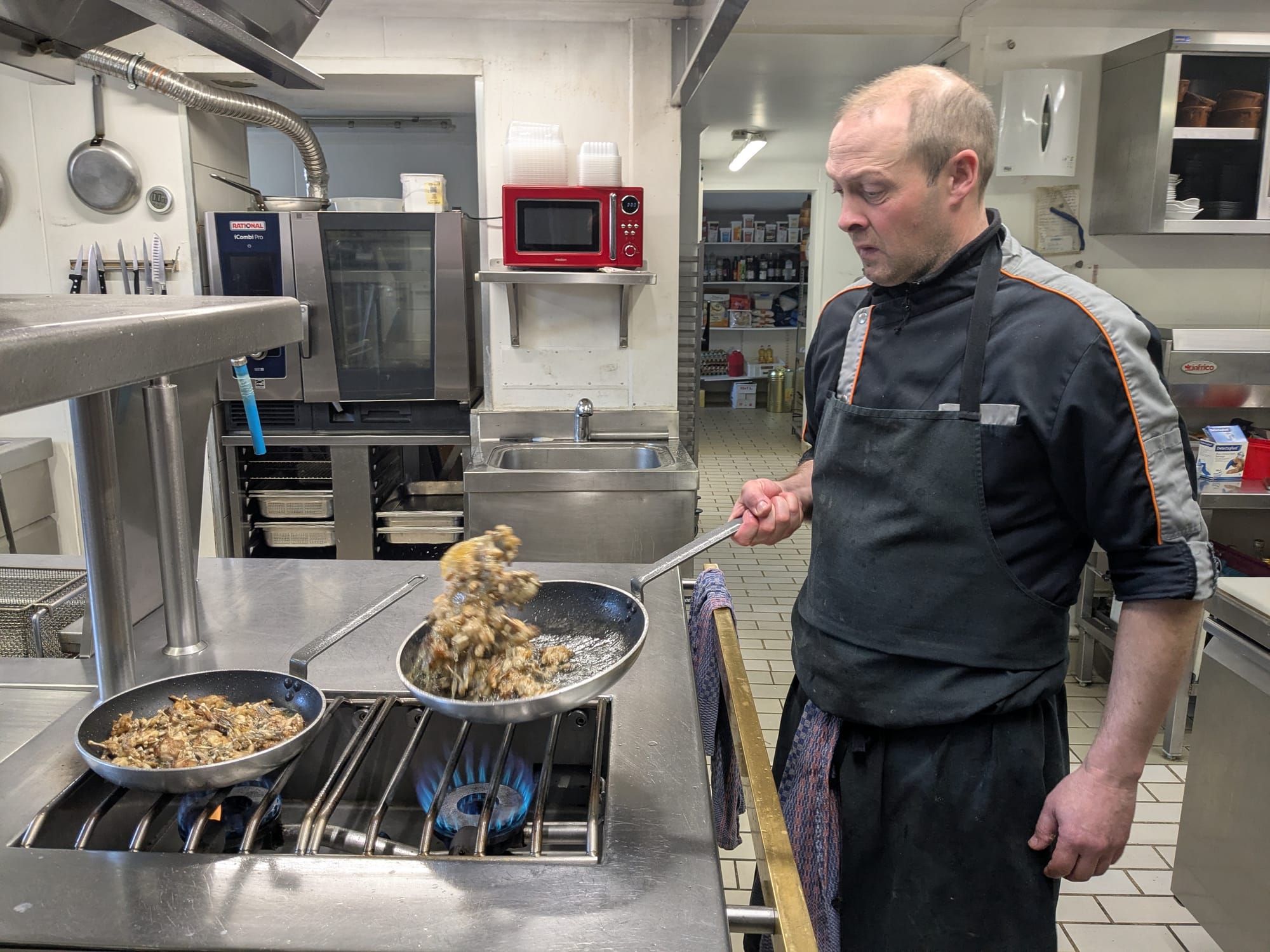 L’arrivée de plus en plus précoce du printemps se répercute aussi sur celle de la reproduction des grenouilles rousses. “Il n’y a plus de date officielle. On commence à cuisiner des grenouilles de plus en plus tôt. Cette année, on en propose depuis la fin février”, explique Sébastien Robichon en pleine préparation d’une poêlée de cuisses de grenouilles rousses.