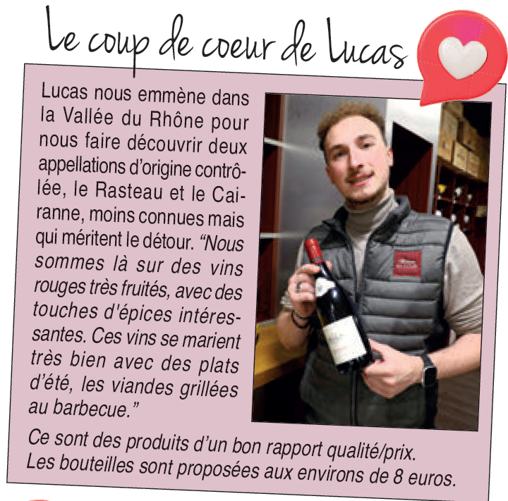 Pour vous aider à faire votre choix, vous pouvez compter sur les conseils de William et Lucas, les deux nouveaux cavistes qui vous accueillent chez Rième Boissons. Ils ont chacun leur personnalité et leurs préférences, mais ils ont en commun cette envie de partager avec les clients leur passion pour le vin et les terroirs. Ils partagent aussi le même coup de coeur pour la région viticole Languedoc - Sud-Ouest. “On y trouve des vins fruités, très intéressants. Il y a de très belles surprises. On peut véritablement se faire plaisir avec des vins entre 7 et 10 euros” disent-ils. Le défi qu’ils relèvent avec enthousiasme est de trouver le meilleur vin pour accompagner un apéritif, un plat cuisiné, tout en restant dans le budget. Rechercher les accords mets/vins est une de leurs spécialités.