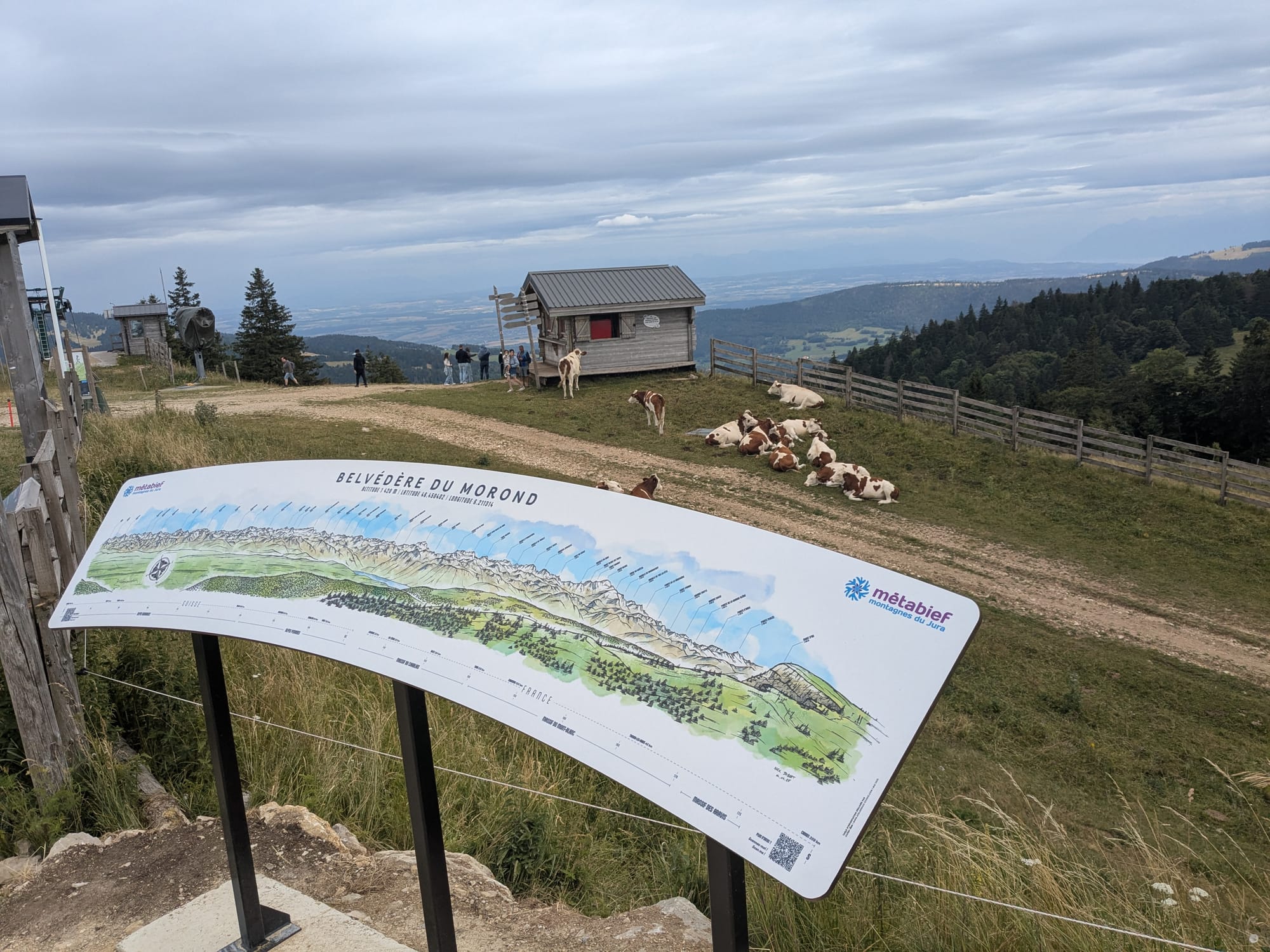 En débarquant du télésiège débrayable par beau temps, c’est toujours l’extase de découvrir ce superbe panorama de plus de 200 km de large sur la chaîne alpine. S’il semble facile d’identifier le Mont-Blanc, c’est moins évident de mettre un nom sur ses voisins. Le problème est désormais réglé avec l’installation d’une table panoramique identifiant la plupart des sommets. Il y a même un spot photo qui permet d’immortaliser la scène en posant devant l’objectif. On n’arrête pas le progrès.