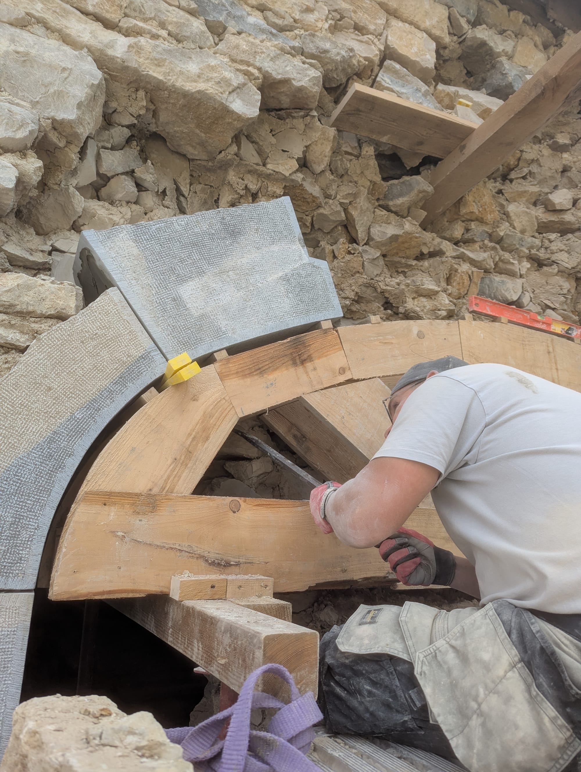 Le champ d’action de Pierre et ouvrages est très large. “On intervient régulièrement sur des chantiers de restauration de bâtiments ou ouvrages anciens, parfois classés comme ce fut le cas à la bibliothèque de Besançon, sur des fermes traditionnelles, des fontaines-lavoirs, des forts militaires, des édifices religieux comme l’abbaye de Montbenoît”, énumère Manu Vitte, finalement plus trop pressé de prendre sa retraite.