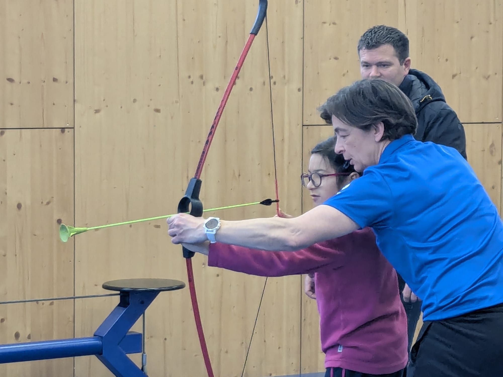 Une poignée d’enfants atteints de handicap physique ou mental étaient présents pour cette première séance organisée pour pouvoir pratiquer à différentes disciplines : tennis, basket, tir à l’arc, tir laser… Chaque flèche qui atteint la cible et aussitôt Jade vient taper dans la main de sa maman pour partager sa réussite. Autiste non verbal, Éthan, 9 ans, n’exprime pas sa joie de façon aussi spontanée. Entre les différents ateliers, il déploie en revanche une énergie assez communicative qui en dit long sur sa satisfaction. “Il ne parle pas mais sait se faire comprendre. Habituellement, il passe ses journées à l’I.M.E. de Morteau qui organise aussi des sorties ski à Métabief ou à la patinoire. Il n’est pas farouche, ne pleure jamais. Comme il n’a pas conscience du danger, cela nécessite beaucoup de vigilance pour ceux qui s’en occupent”, explique Sébastien, son père très satisfait de participer à cette séance.