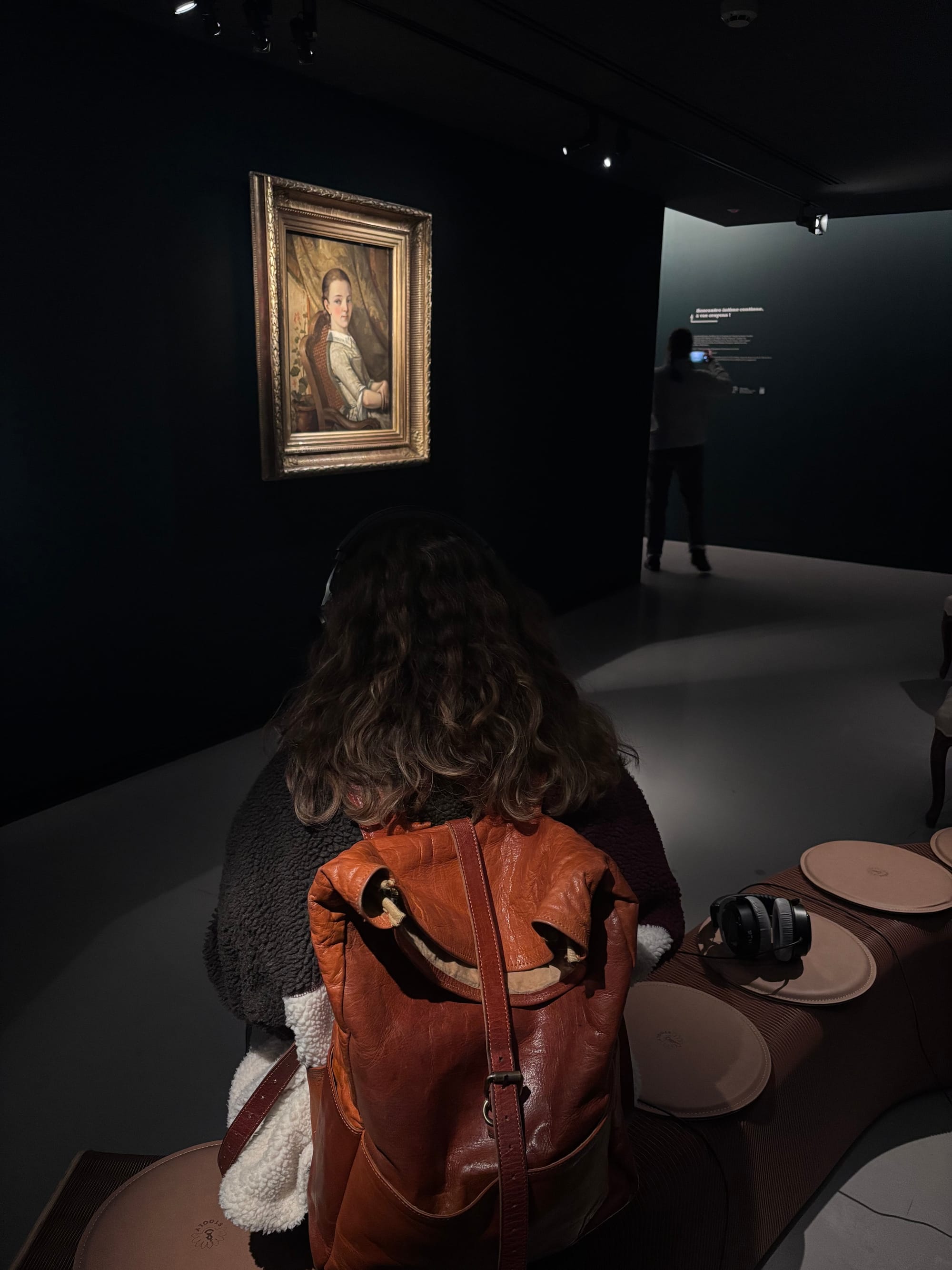 Plongée dans une douce pénombre, cette peinture attire toute la lumière. Par le biais de trois dispositifs sonores, le visiteur-contemplateur prend le temps de s’asseoir et de s’imprégner de la toile peinte par le maître ornanais en 1844. Un casque anti-bruit permet de s’isoler de l’extérieur, un autre diffuse des extraits de correspondances de Gustave Courbet et le troisième donne à écouter la Causette de Juliette, un dialogue décalé et anachronique où la jeune sœur Courbet raconte la séance de pose à sa meilleure amie. L’équipe du musée Courbet a prêté sa voix pour l’occasion. Car ce projet est avant tout collectif, chaque personnel du musée a pu apporter son concours.