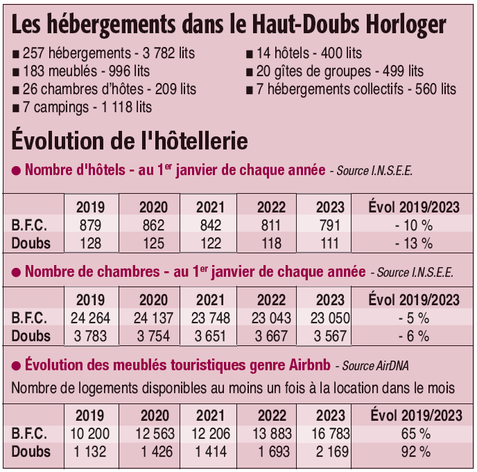 Dans le Haut-Doubs Horloger, on compte encore 14 hôtels. Mais l’hôtellerie est de plus en plus challengée par d’autres formes d’hébergements. Elle doit s’adapter au changement.
