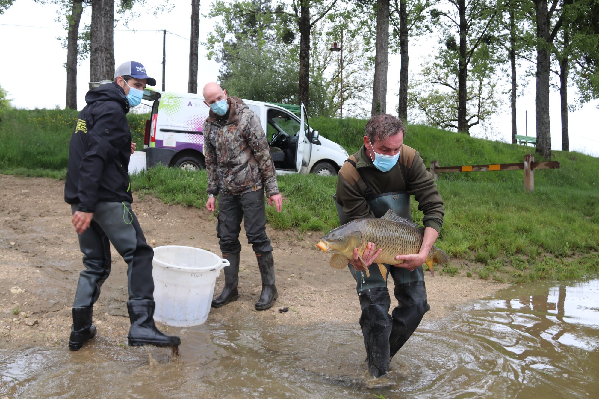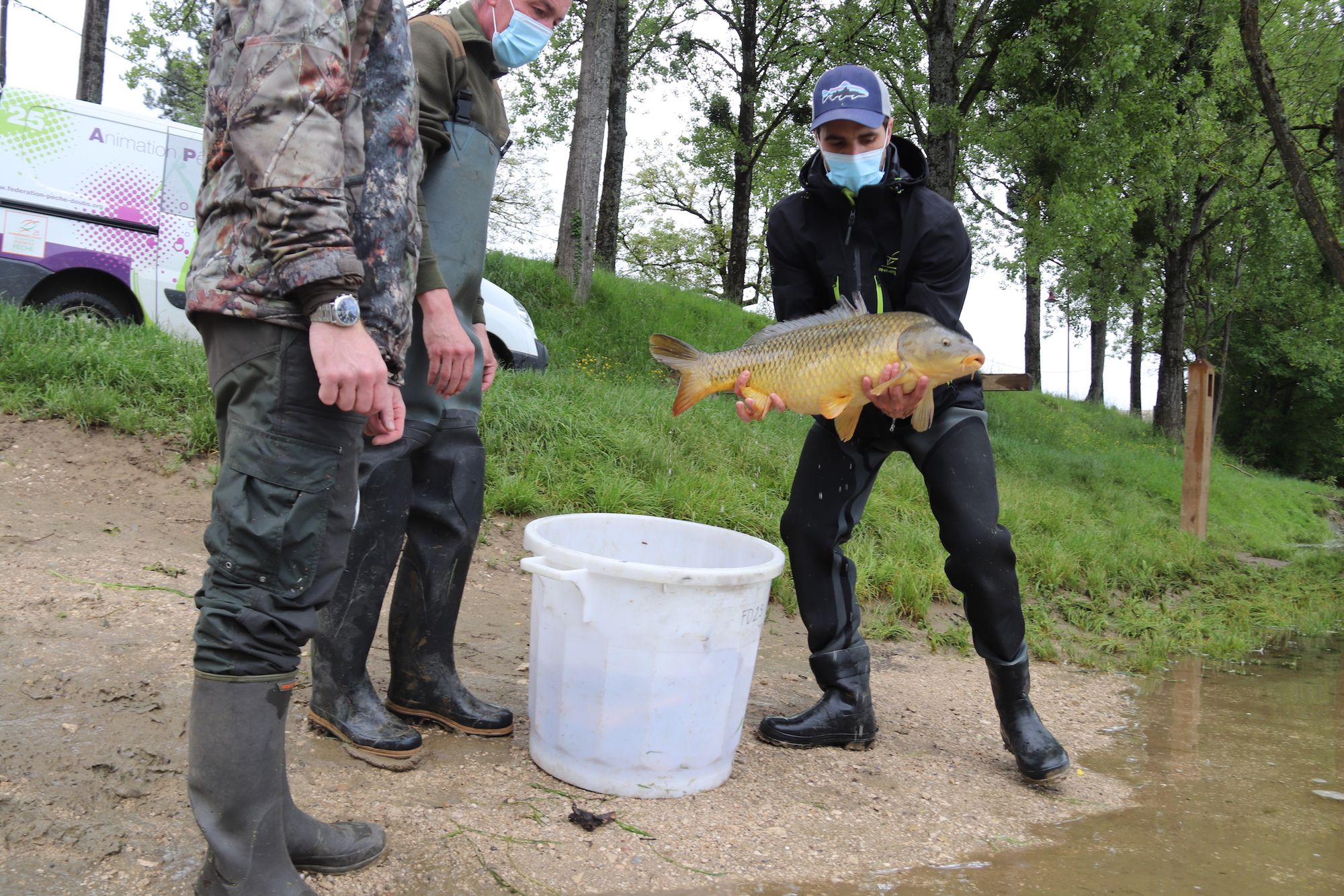 Sans l'aide des deux techniciens, ces carpes auraient péri. Ce cours d'eau, modelé par la main de l'homme, est canalisé par endroits. Lorsque l'eau redescend, la faune aquatique n'est pas en capacité de surmonter les obstacles pour retrouver le lit du Doubs.