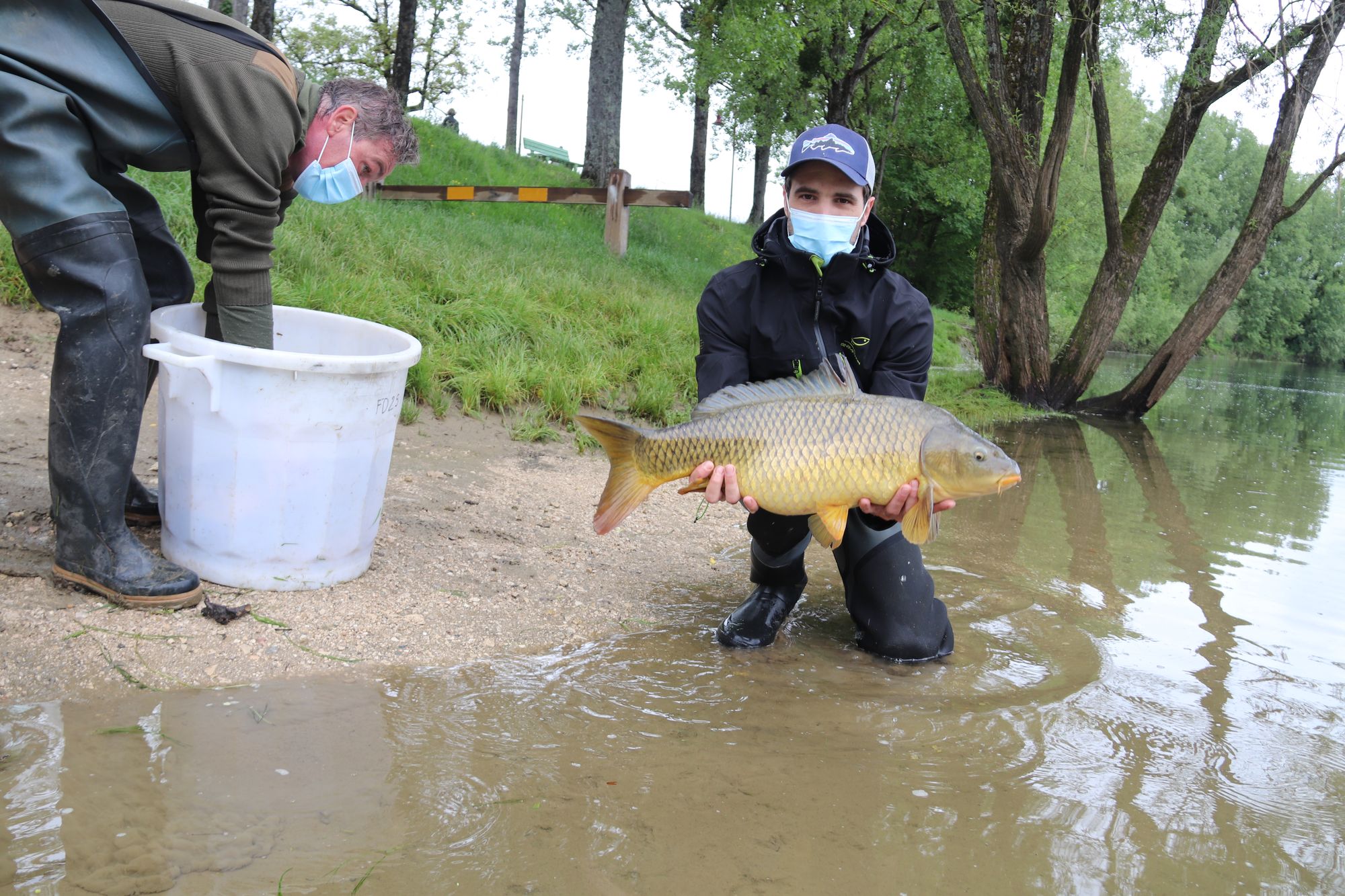 Elles ont profité de la crue du Doubs pour s'extirper de leur milieu. Mal leur en a pris. Plusieurs carpes se sont retrouvées piégées par la décrue dans un ruisseau parallèle à l'aérodrome de Thise. Alertée par des pêcheurs, la fédération de pêche du Doubs s'est déplacée jeudi 27 mai pour réaliser une pêche électrique. Au total, six poissons ont pu être capturés, dont plusieurs dépassaient les 10 kg, pour être remis dans leur élément naturel au niveau de Chalezeule.