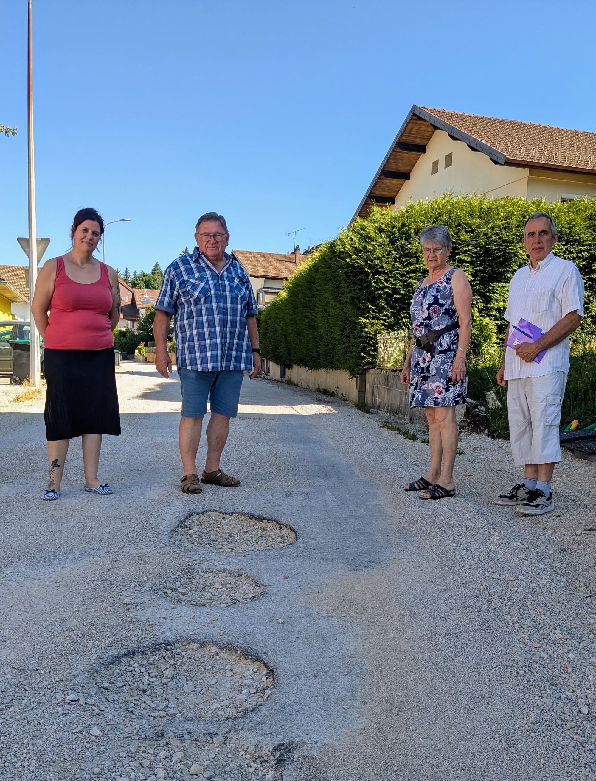 De guerre lasse, Gérard Guinot a rappelé les services techniques sans oublier d’envoyer un courrier au maire pour demander quelques explications au nom des habitants du quartier. On nous a promis l’enrobé pour septembre. Entre-temps, un ouvrier est venu reboucher les plus gros trous sauf qu’il n’avait pas assez de tout-venant pour finir le travail. Conséquences : il reste 18 trous en attente.