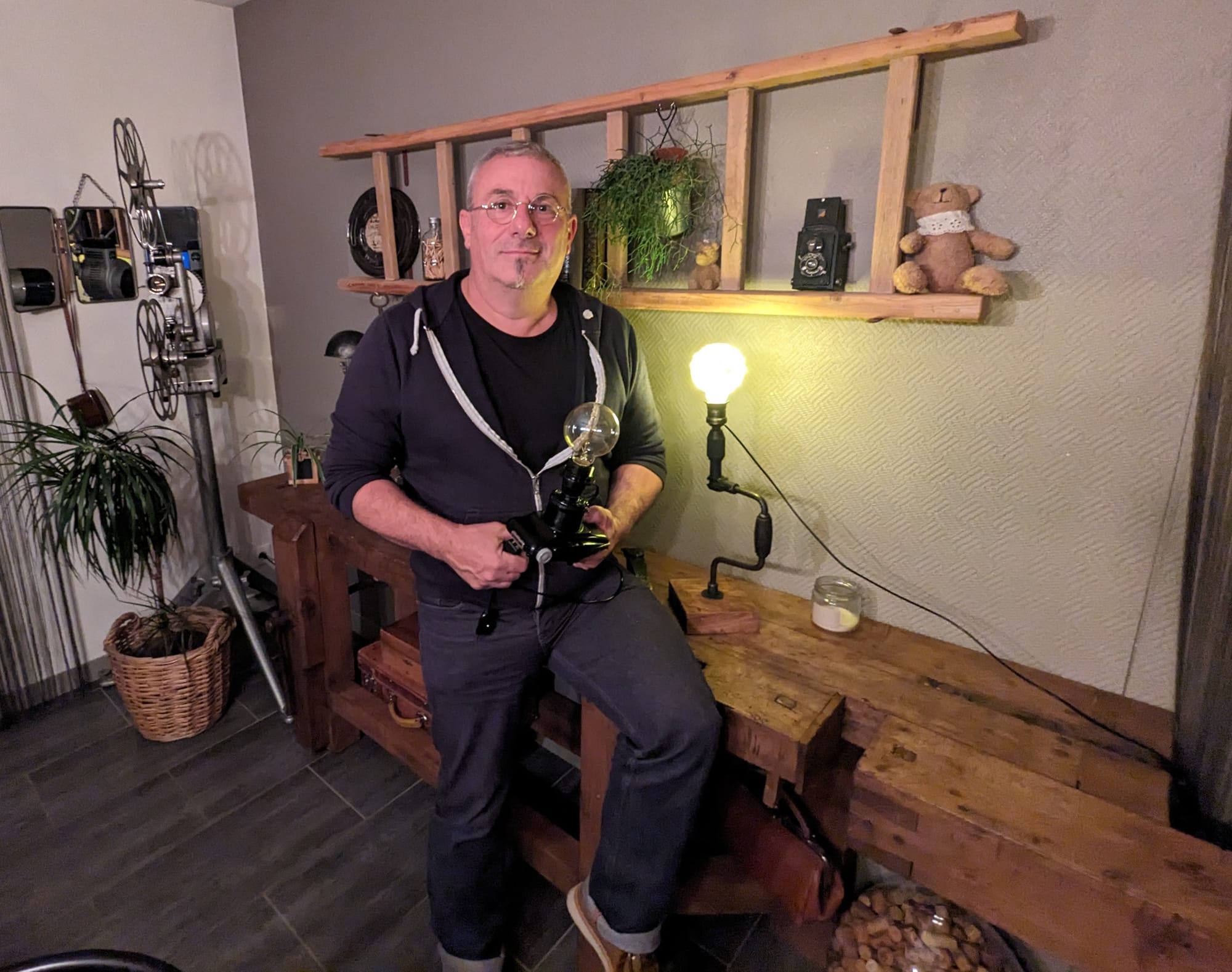 Au décès d’un de ses proches qui exerçait la profession de menuisier, il reprend plusieurs outils et s’en sert pour y poser une lampe de son choix. Sans trop s’en rendre compte, les luminaires succèdent aux luminaires. D’amicale, la demande devient commerciale. “J’ai posé un S.I.R.E.T. pour créer la société Déco Vintage 25.”