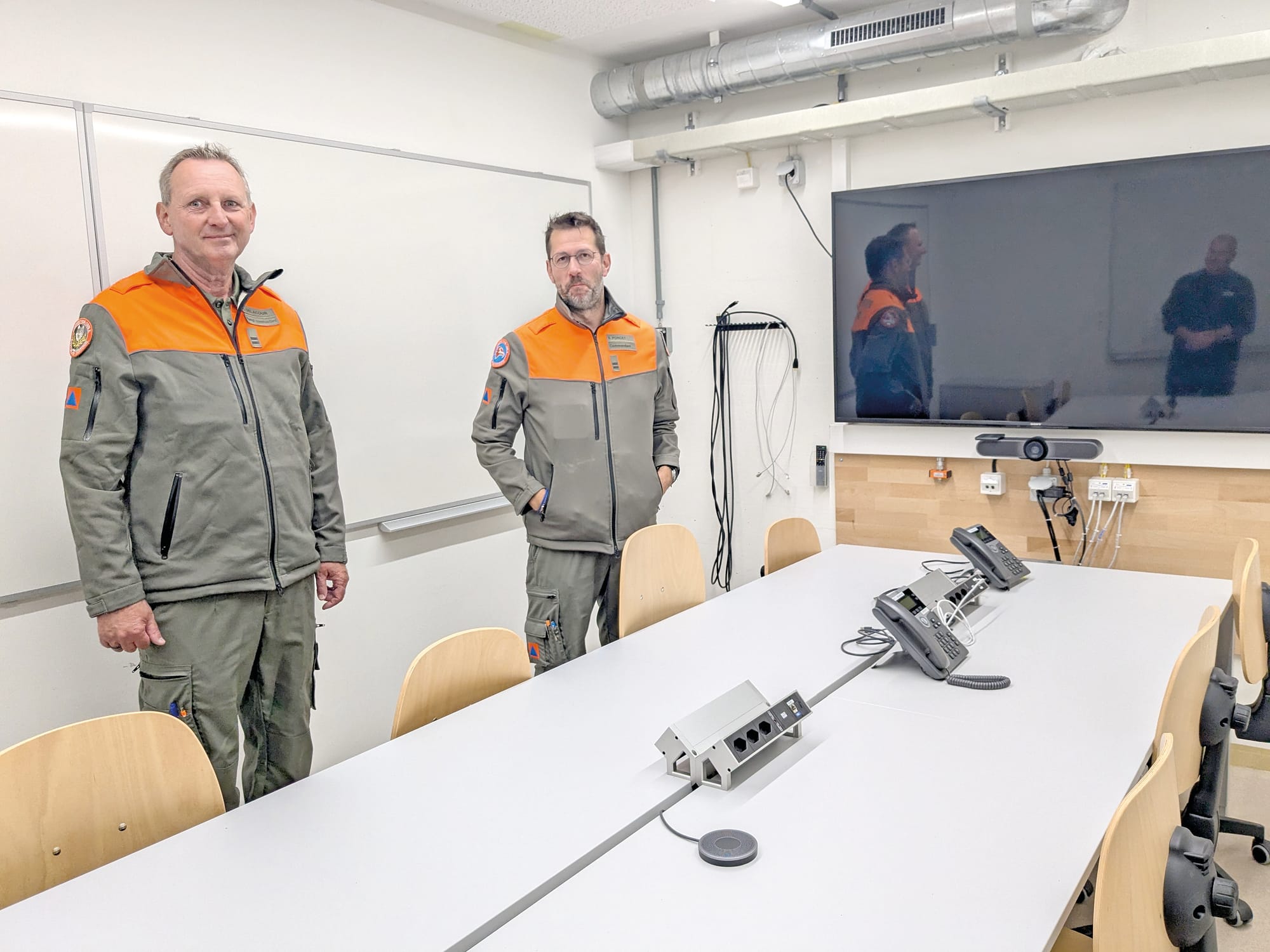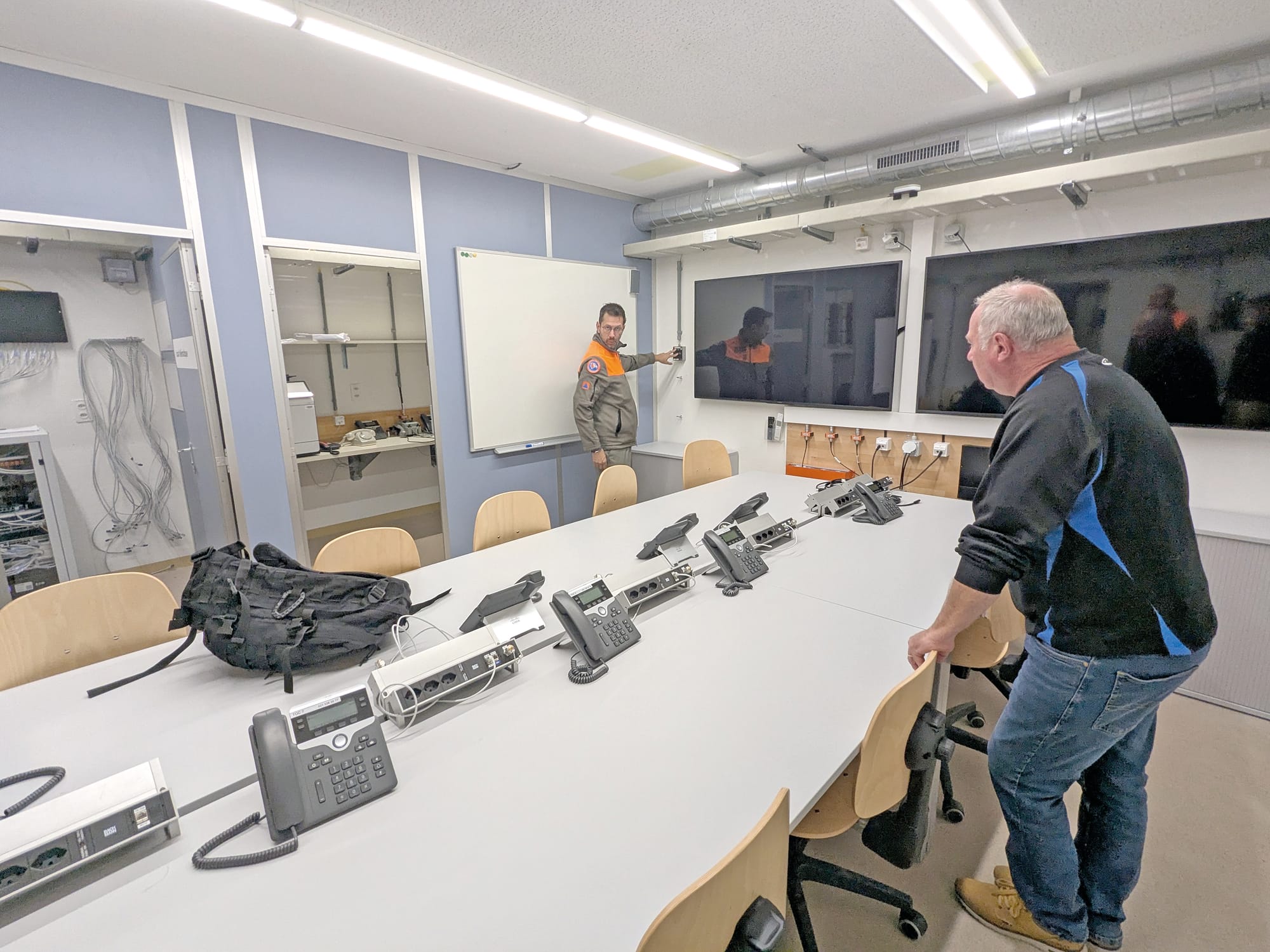 D’une capacité de 37 000 litres, la réserve d’eau est attenante à la cuisine du poste de commandement. Cette citerne peut être remplie par le réseau ou par un apport extérieur. En cas d’utilisation, le commandant du poste et le chef d’État-major disposent d’un bureau individuel avec tous les équipements de communication nécessaires. “On a même droit à deux couchettes individuelles”, sourit Sébastien Poncet, commandant de l’organisation régionale de protection civile sur le district Jura Nord Vaudois.