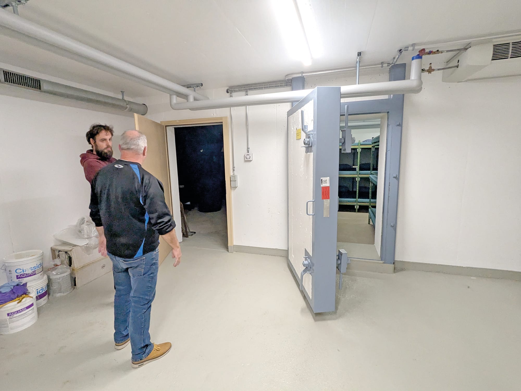 “Chaque construction dispose d’une prise d’air et d’une évacuation fonctionnant à partir d’un groupe électrogène alimenté au fioul avec une réserve de 14 jours de marche. Le poste de commandement est conçu pour accueillir la protection civile et lui permettre de faire son travail. On trouve des espaces de réunion avec des équipements de communication. Il y a aussi des salles d’hébergement, une cuisine, des toilettes, une réserve d’eau. Toute l’installation électrique est protégée. C’est la même chose avec l’eau et l’air”, poursuit Olivier Duvoisin.