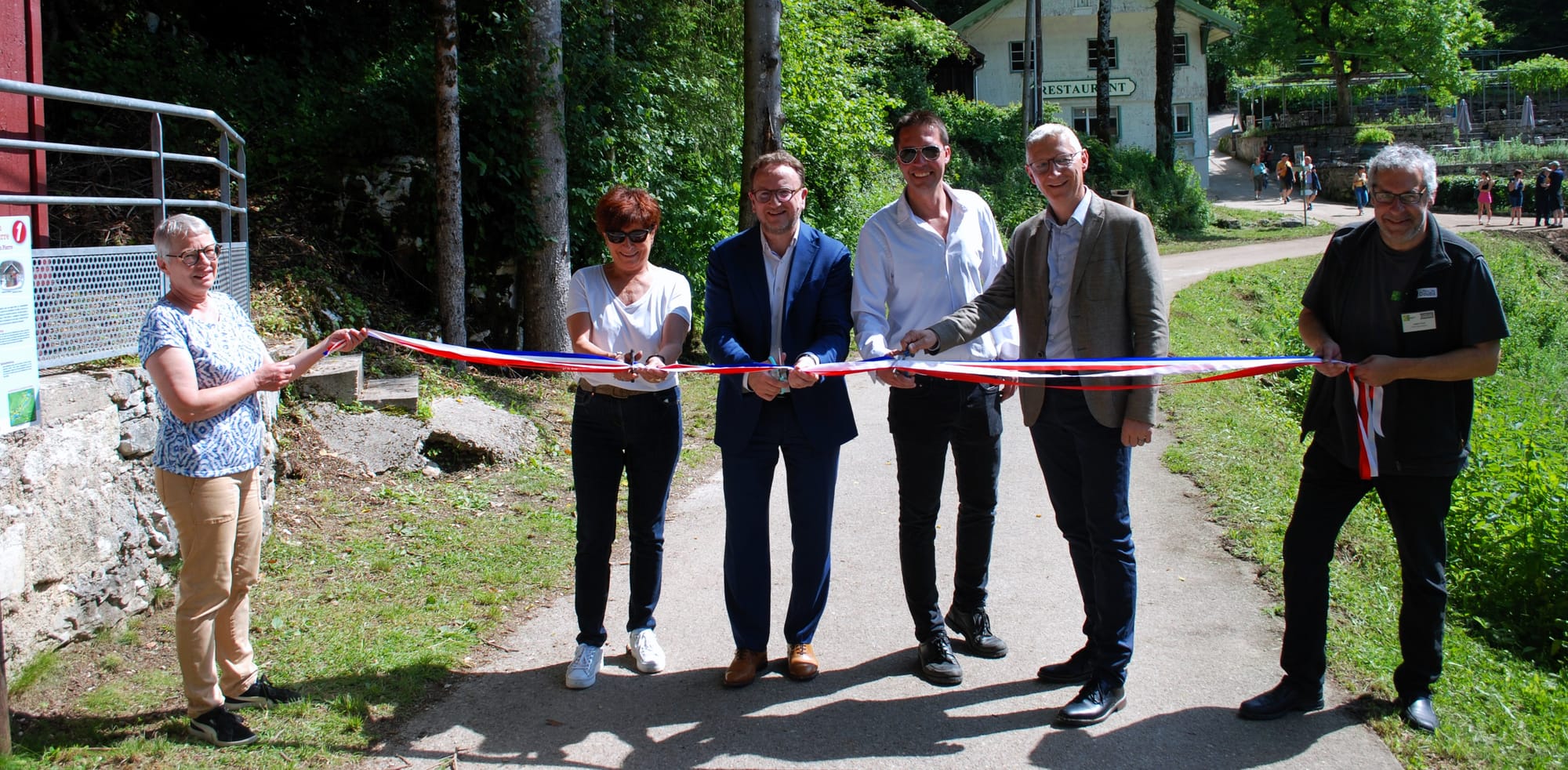 Le président du P.N.R. du Doubs Horloger a lui tenu à énumérer les partenaires de ce projet transfrontalier, parmi lesquelles on compte l’État, le Département du Doubs ou la fondation Arc jurassien. Il a salué également la présence d’Annie Genevard, l’ex-députée en campagne, celle du conseiller communal de la ville du Locle, ainsi que celle de la maire de Villers-le-Lac Dominique Mollier. Cette dernière a rappelé l’attrait qu’exerce le cadre merveilleux de la cascade du Saut du Doubs sur les visiteurs : “300 000 touristes viennent chaque année admirer cette chute d’eau de 27 mètres. Même lors des périodes d’étiage, ils sont encore 4 000 chaque jour. On peut y accéder, à sa guise, en bateau, à vélo ou à pied.”